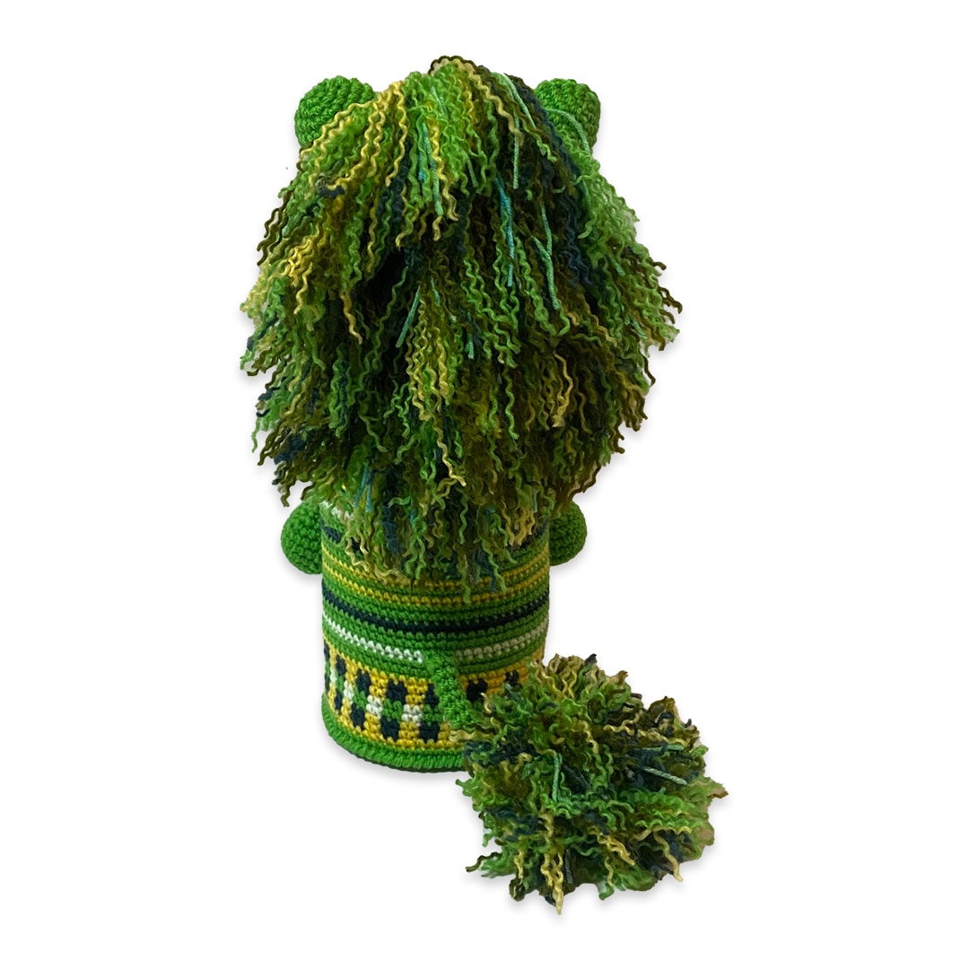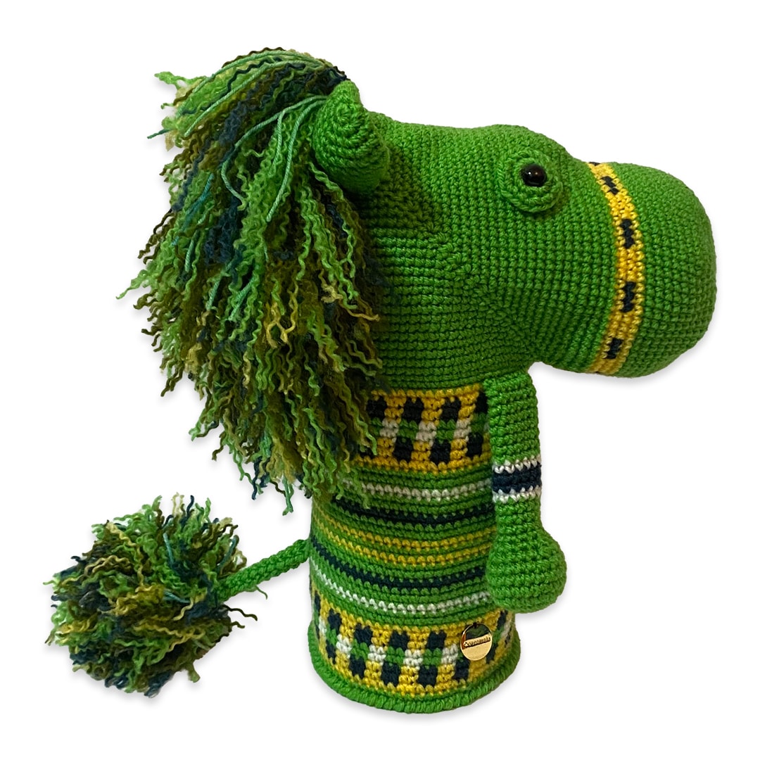 本体は耐久性と色の発色の良さを重視したアクリル毛糸を使用。裏地には高価生地ストレッチボアを使用したドライバー専用のヘッドカバーです。