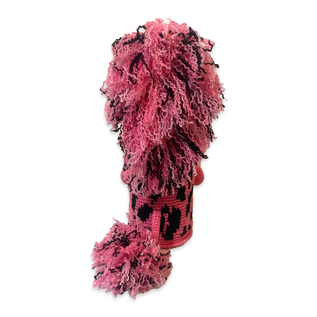 本体は耐久性と色の発色の良さを重視したアクリル毛糸を使用。裏地には高価生地ストレッチボアを使用したドライバー専用のヘッドカバーです。