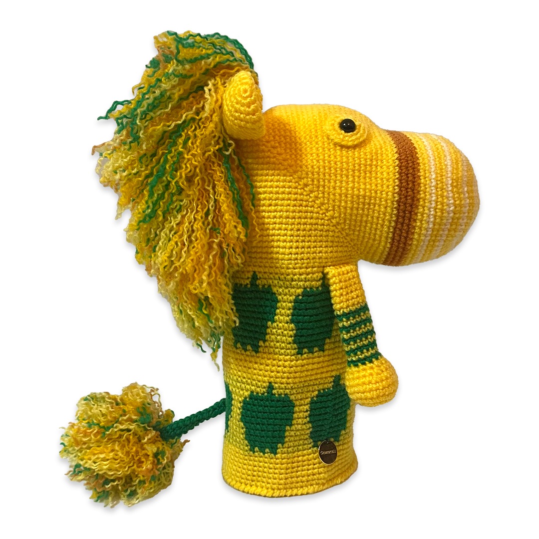 本体は耐久性と色の発色の良さを重視したアクリル毛糸を使用。裏地には高価生地ストレッチボアを使用したドライバー専用のヘッドカバーです。