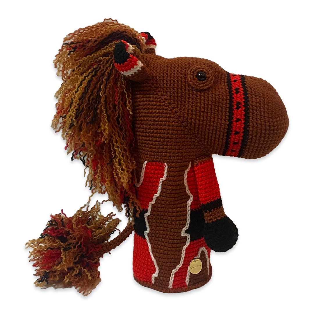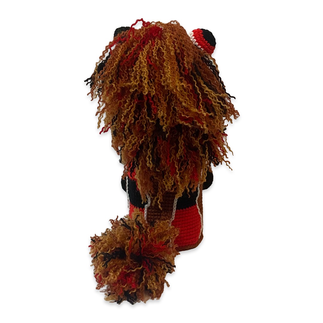 本体は耐久性と色の発色の良さを重視したアクリル毛糸を使用。裏地には高価生地ストレッチボアを使用したドライバー専用のヘッドカバーです。