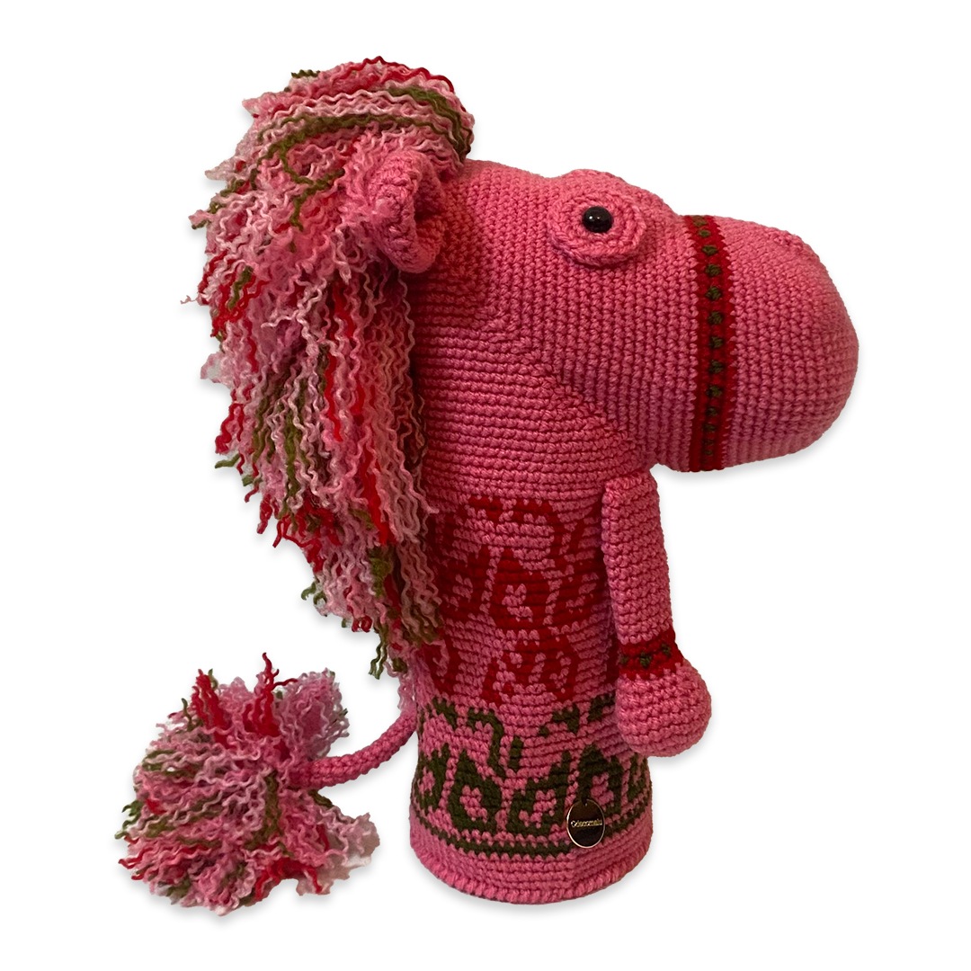 本体は耐久性と色の発色の良さを重視したアクリル毛糸を使用。裏地には高価生地ストレッチボアを使用したドライバー専用のヘッドカバーです。