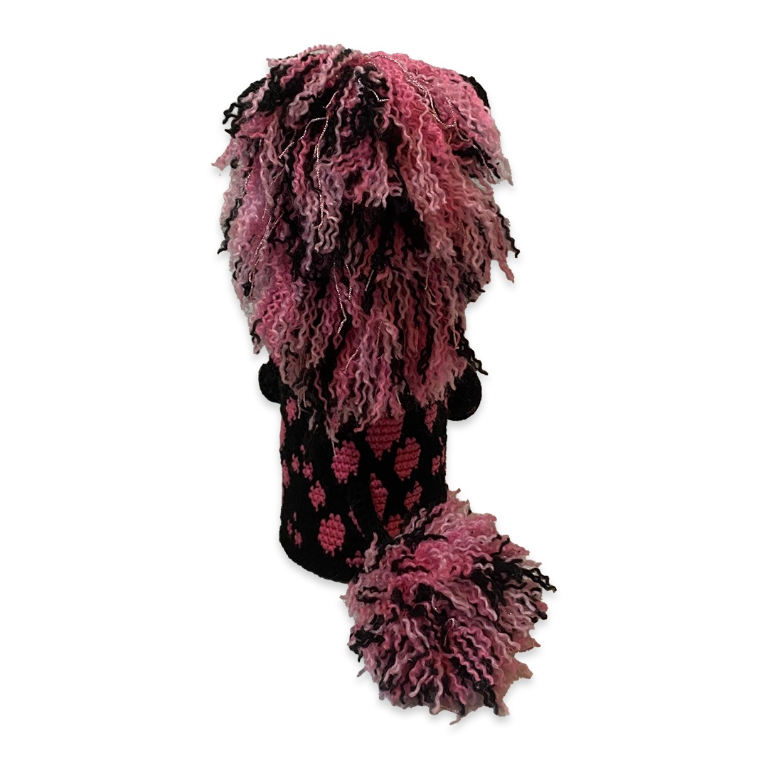 本体は耐久性と色の発色の良さを重視したアクリル毛糸を使用。裏地には高価生地ストレッチボアを使用したドライバー専用のヘッドカバーです。