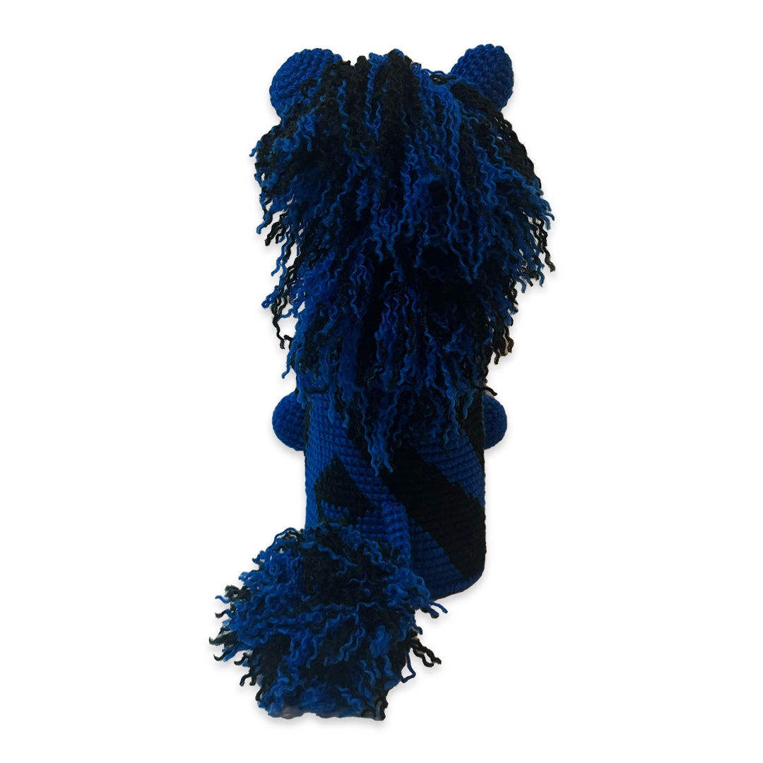 本体は耐久性と色の発色の良さを重視したアクリル毛糸を使用。裏地には高価生地ストレッチボアを使用したドライバー専用のヘッドカバーです。