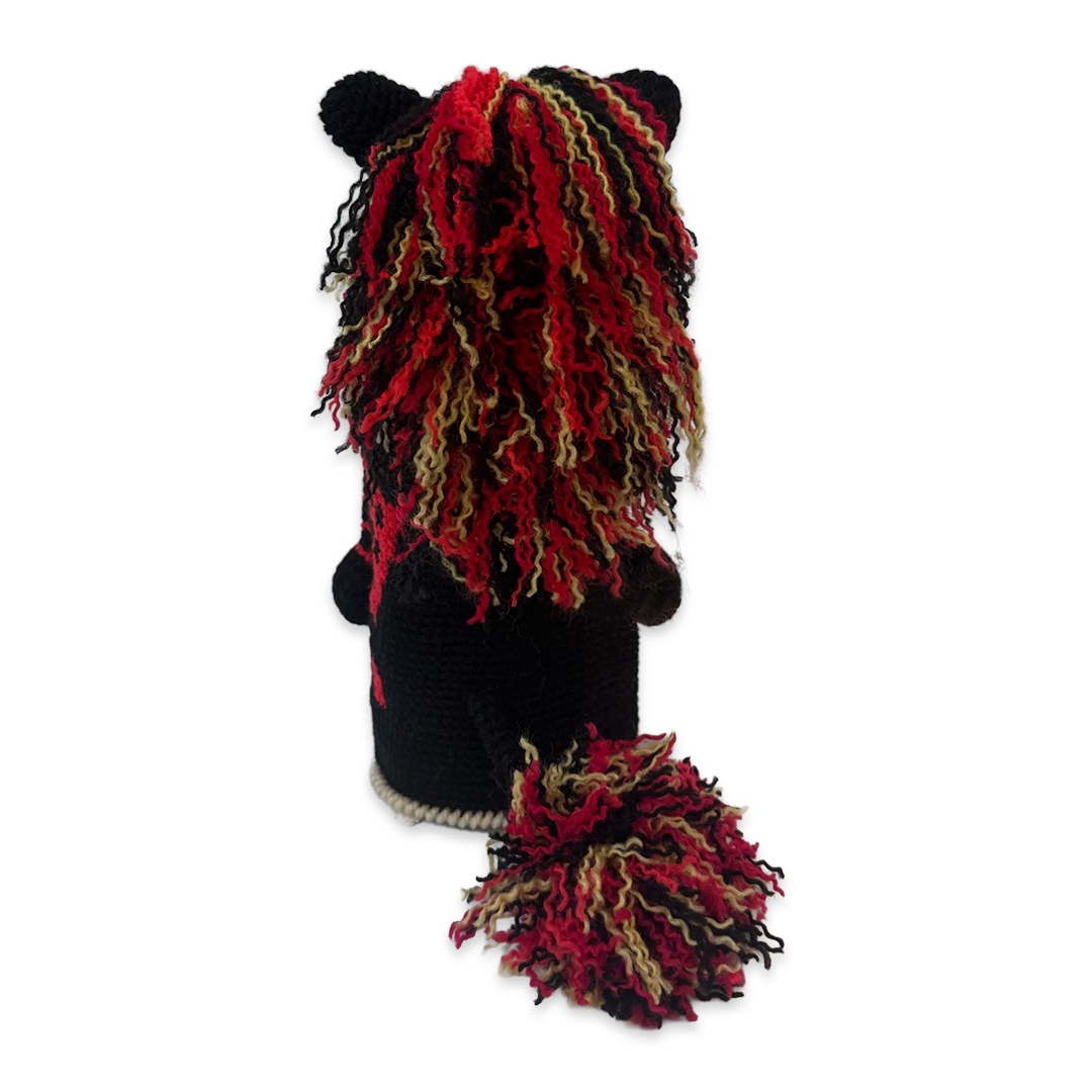本体は耐久性と色の発色の良さを重視したアクリル毛糸を使用。裏地には高価生地ストレッチボアを使用したドライバー専用のヘッドカバーです。