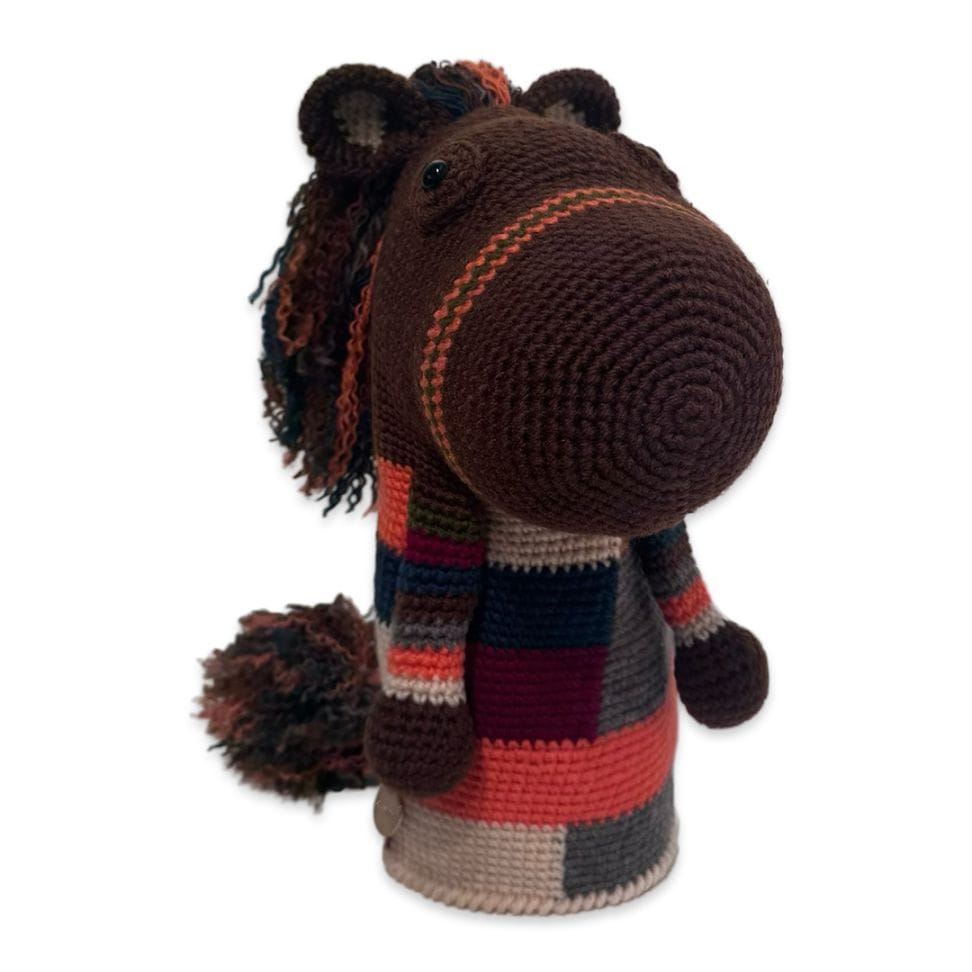 本体は耐久性と色の発色の良さを重視したアクリル毛糸、裏地には高価生地ストレッチボアを使用。