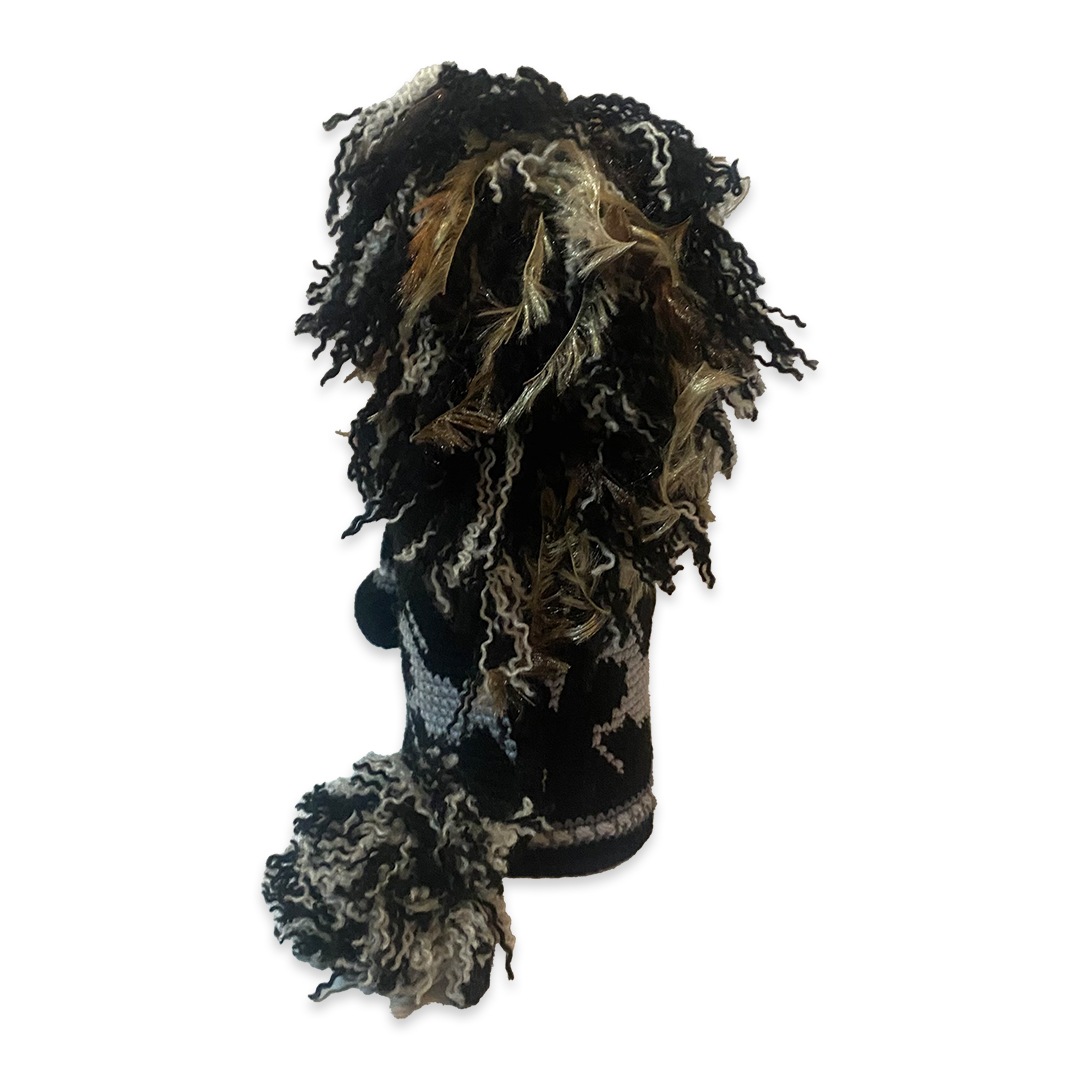 本体は耐久性と色の発色の良さを重視したアクリル毛糸を使用。裏地には高価生地ストレッチボアを使用したドライバー専用のヘッドカバーです。