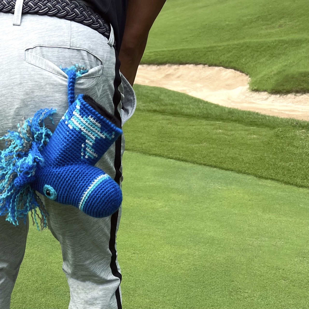 パターホルダーと一体式のポニーカバーは、小馬のしっぽをお尻ポケットに刺してプレーが可能な便利アイテム。従来のマジックやボタンを無くし、ストレスフリーな仕上がりを実現させました。ポニーカバーを使えば、誰もがパターの名手!