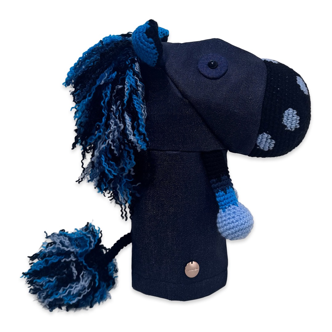Sese(セセ) 本体は耐久性と色の発色の良さを重視したアクリル毛糸と倉敷染のアップサイクルデニムを使用。裏地には高価生地ストレッチボアを使用したドライバー専用のヘッドカバーです。