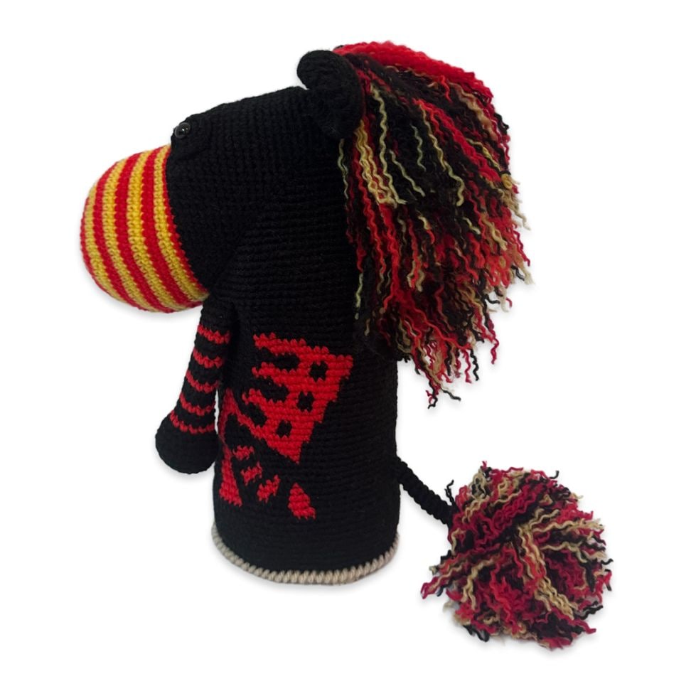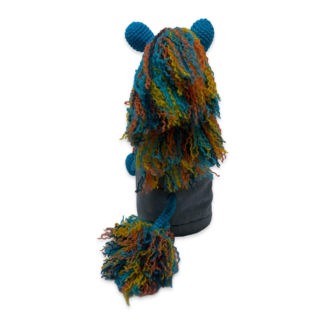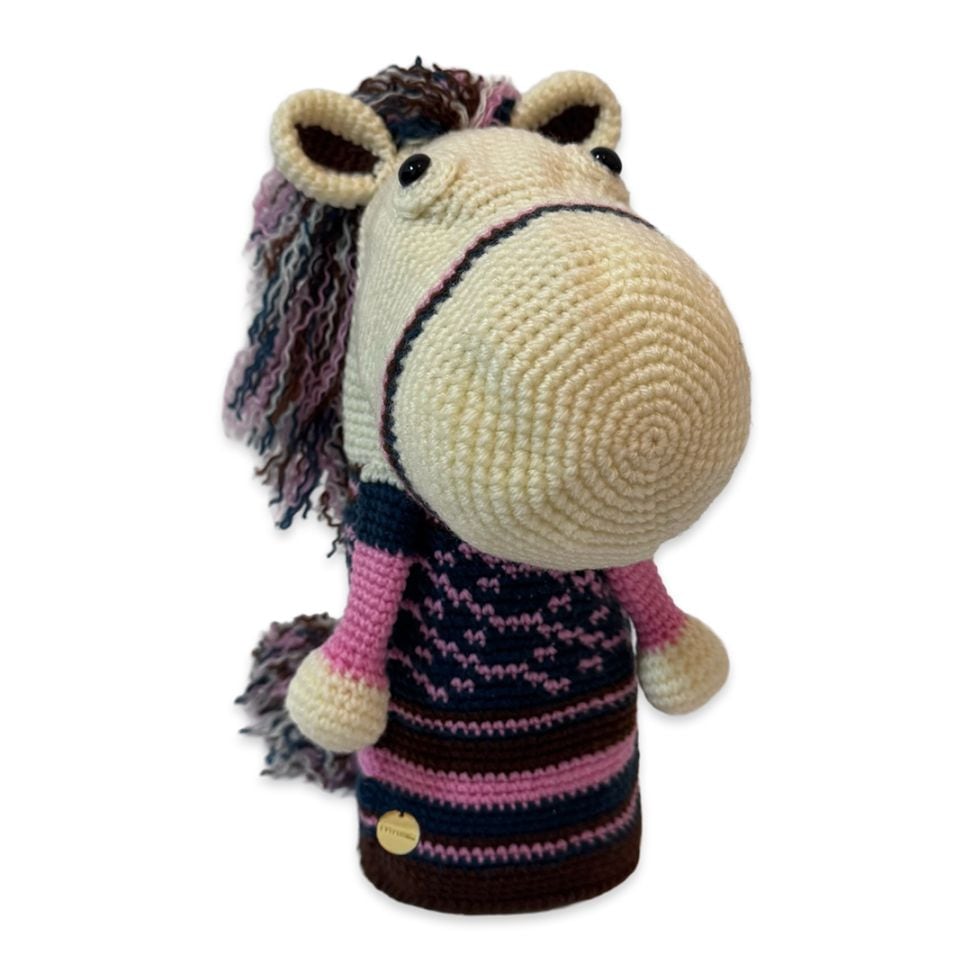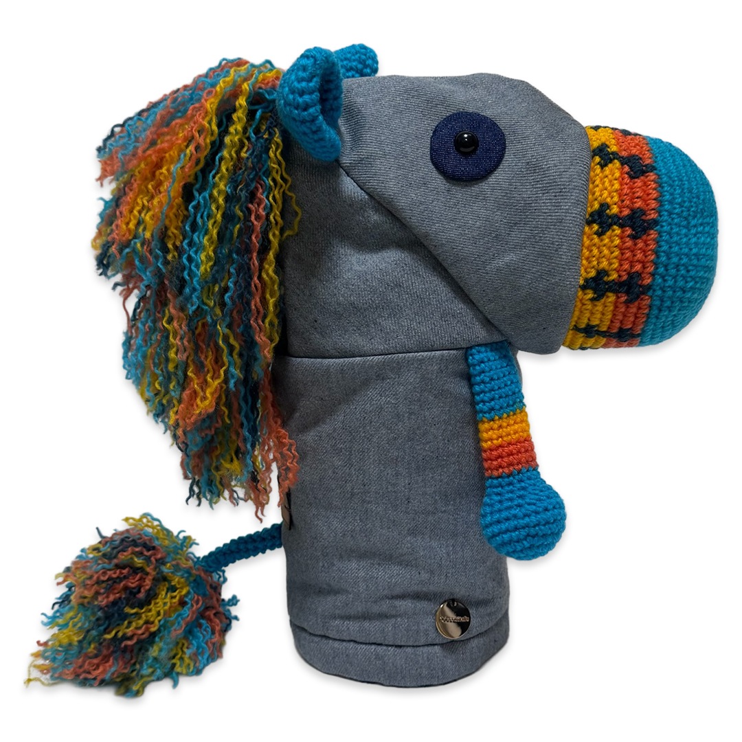 本体は耐久性と色の発色の良さを重視したアクリル毛糸と倉敷染のリサイクルデニムを使用。裏地には高価生地ストレッチボアを使用したドライバー専用のヘッドカバーです。